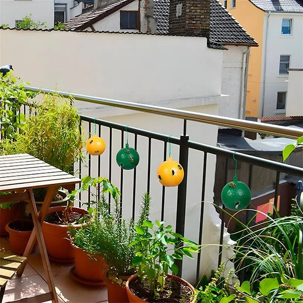 This hanging fly trap provides effective outdoor insect control without chemicals. Its adhesive surface attracts and traps flies and other pests in gardens, patios, balconies, orchards, and greenhouses helping protect fruits, vegetables, and flowers for a cleaner, safer environment.