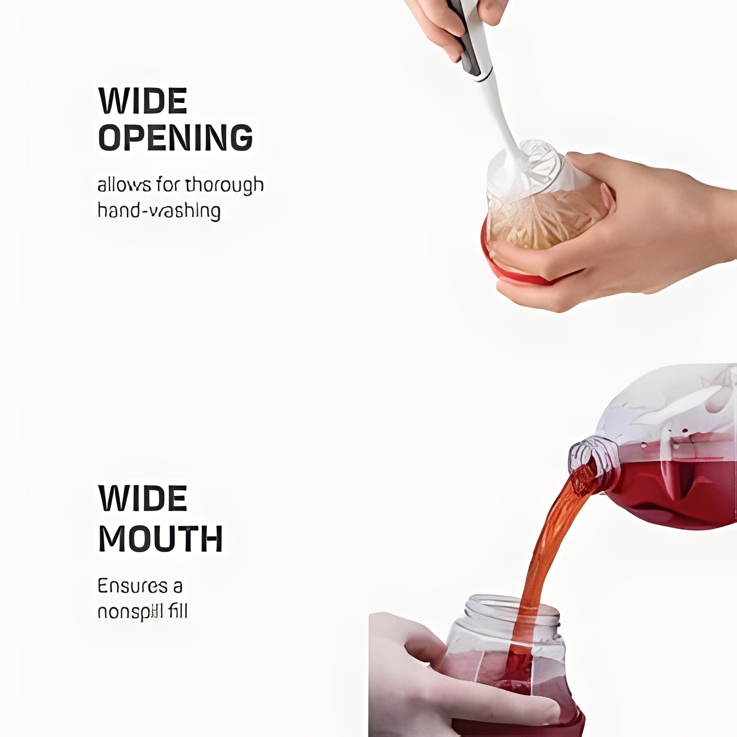 The feeder has a wide opening for filling. For cleaning, the two-part base is designed to twist apart, providing access to the interior. The manufacturer states it is hand wash only.
