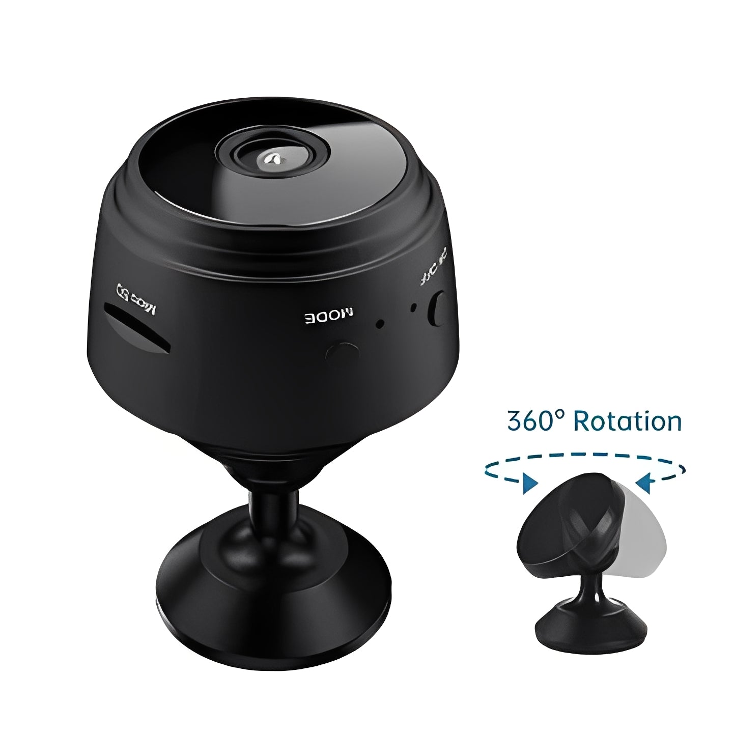 You can attach the camera to a metal surface using its integrated magnet and pivot the 360° adjustable bracket. The weather-resistant housing is designed for outdoor use. The camera supports automatic loop recording onto a microSD card (not included).
