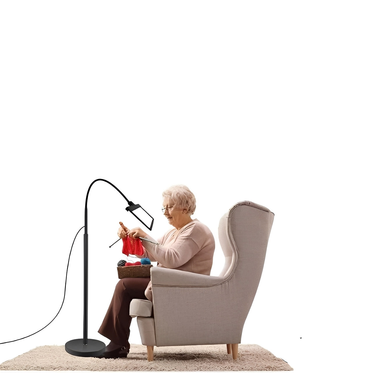 A flexible gooseneck arm allows the lamp head to be positioned at different heights and angles. The weighted base is designed to help keep the lamp upright during normal use and adjustment. Placement stability may vary depending on surface type.
