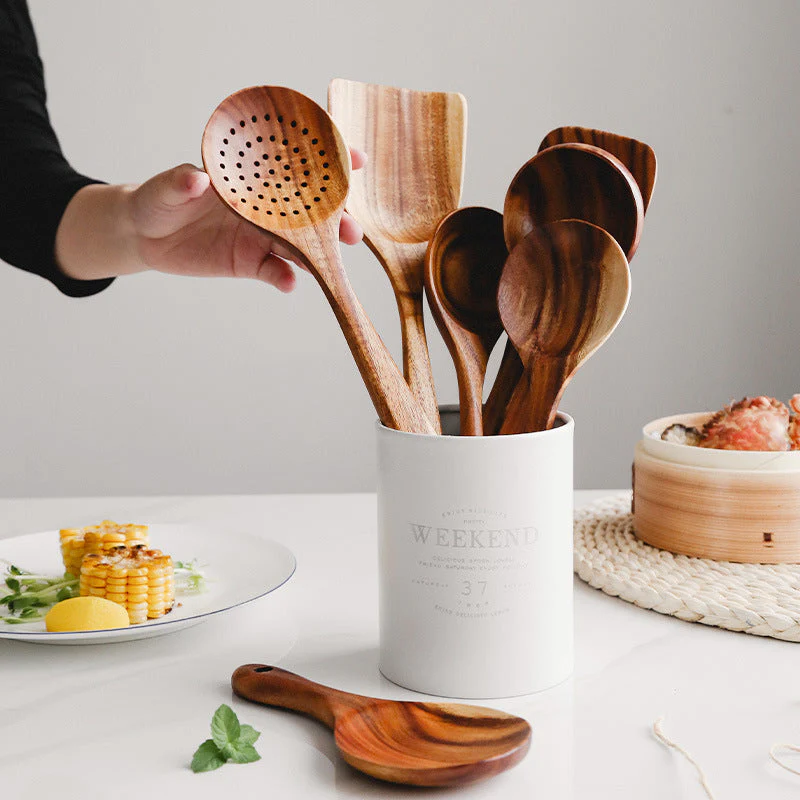 Teak is known for exceptional strength and longevity, making this set an eco-friendly choice that reduces waste. Choosing natural wood over disposable or synthetic tools means investing in utensils that serve you for years.