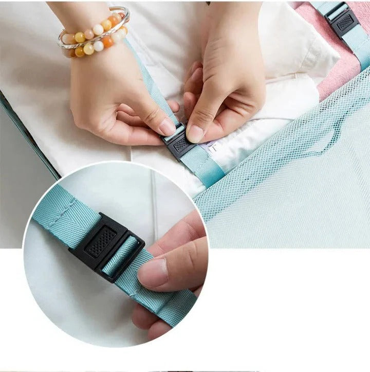 The mesh is designed to be durable for travel and allows you to see the contents of the cube without opening it.