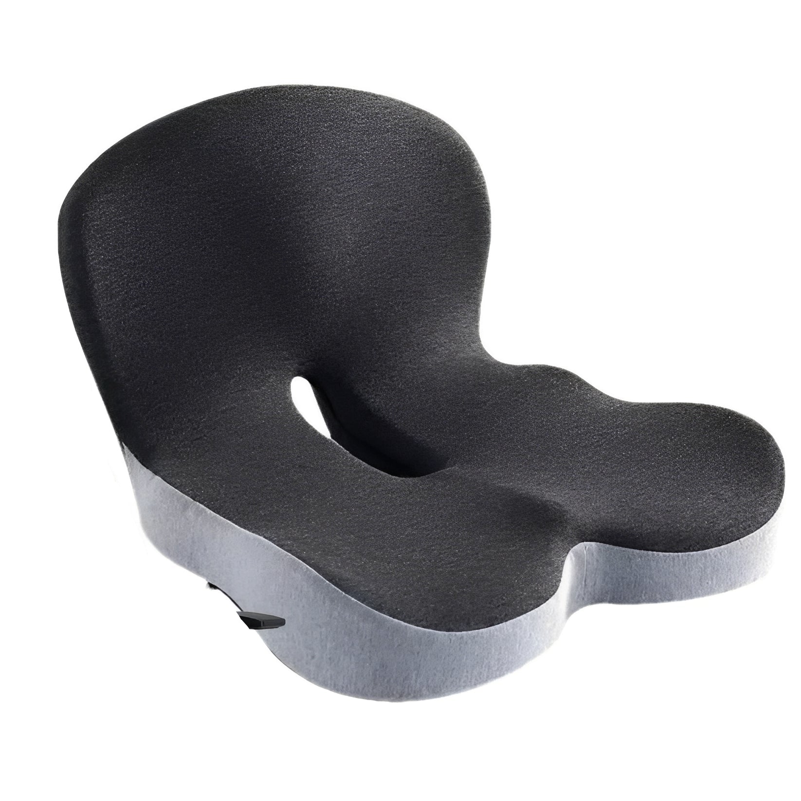 This seat cushion is designed to provide added support during seated use. Its integrated shape combines a seat base and back support in one unit, offering structured contact for the lower back and seating area. The contoured form is intended for use on chairs in offices, classrooms, vehicles, or home seating.