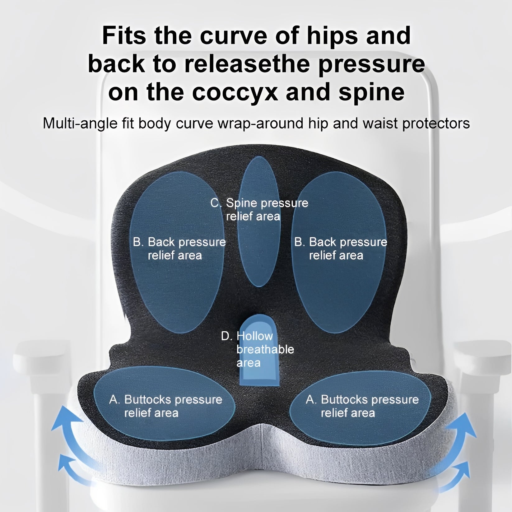 The design includes a hollow center to enhance airflow, keeping the seat cool and breathable even during extended use.