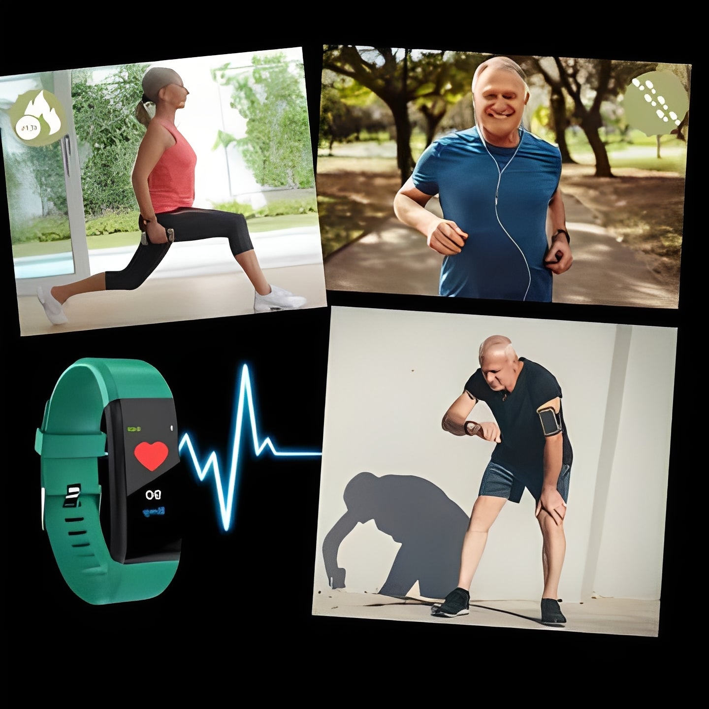 This smartwatch features an LED screen designed for visibility. The interface is intended to be simple to navigate, which may be helpful for users who prefer a straightforward layout. The overall design aims to support ease of use across a wide range of users, including seniors.