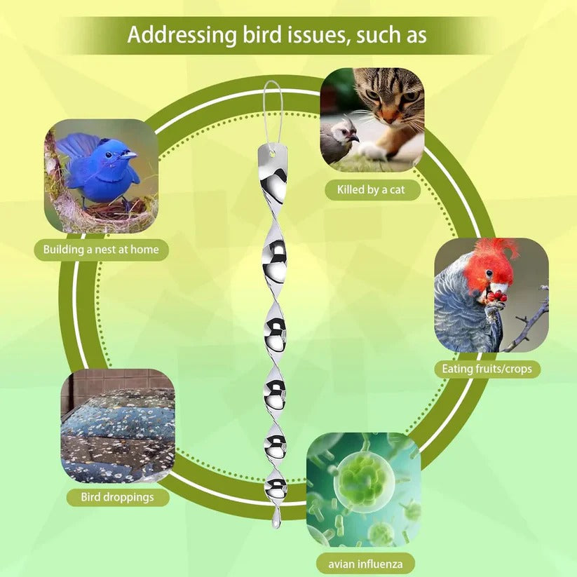 This spiral bird deterrent rod is designed to help discourage birds from landing or nesting in specific outdoor areas using visual cues rather than physical barriers. It relies on light reflection and movement rather than chemicals, traps, or electricity, making it suitable for users seeking a non-toxic, low-intervention option. Effectiveness may vary depending on bird species, placement, and environment.