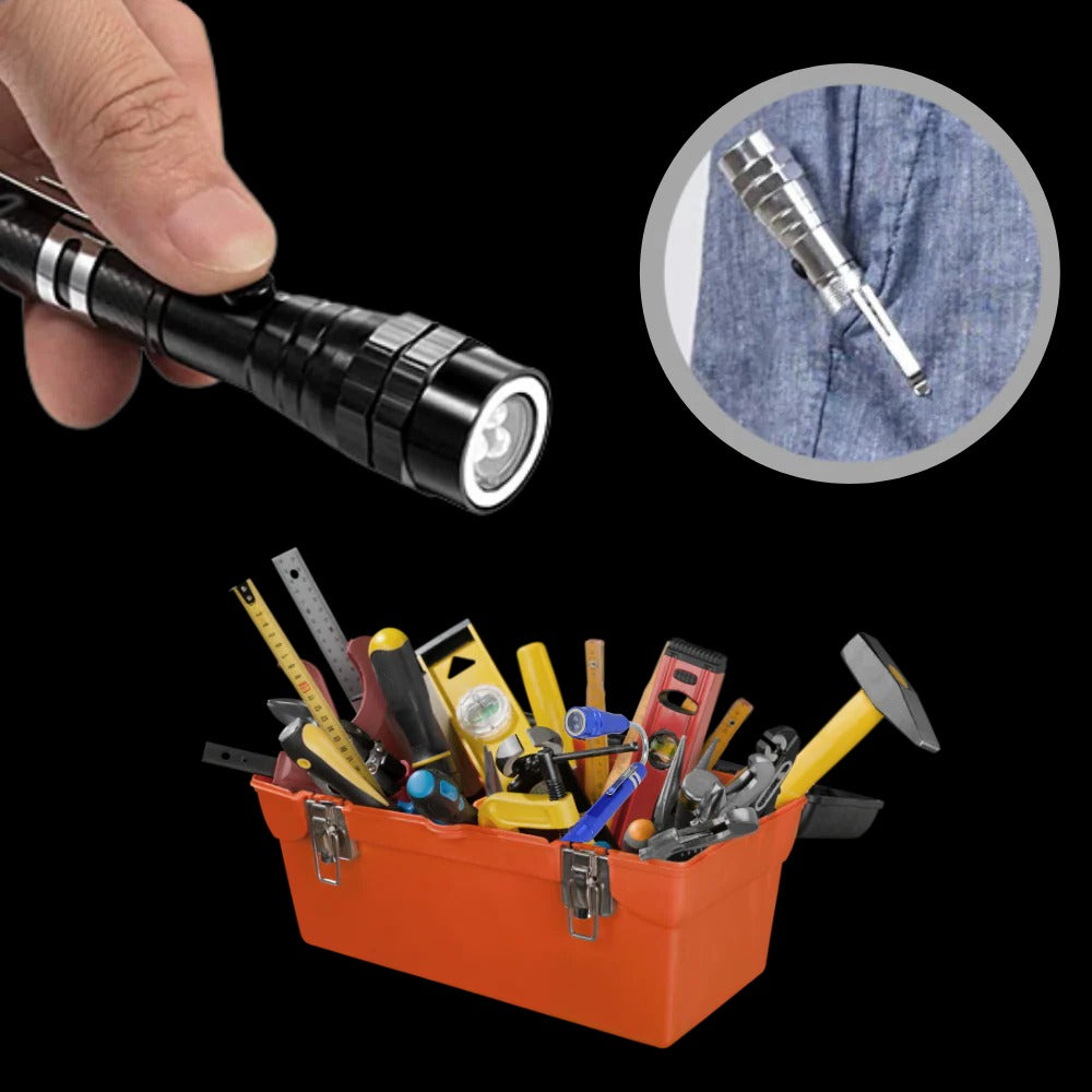 Stop struggling with dropped screws, keys, or tools in dark, inaccessible gaps. This versatile tool combines a powerful LED light with a magnetic pick-up head, solving two common problems at once. Whether you are a mechanic working in an engine bay or simply trying to find an item under the sofa, this device is the ultimate solution for seeing and retrieving objects in tight spaces.