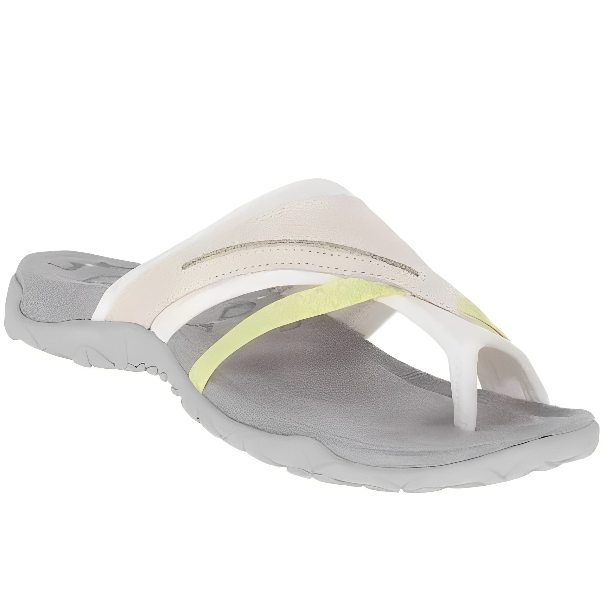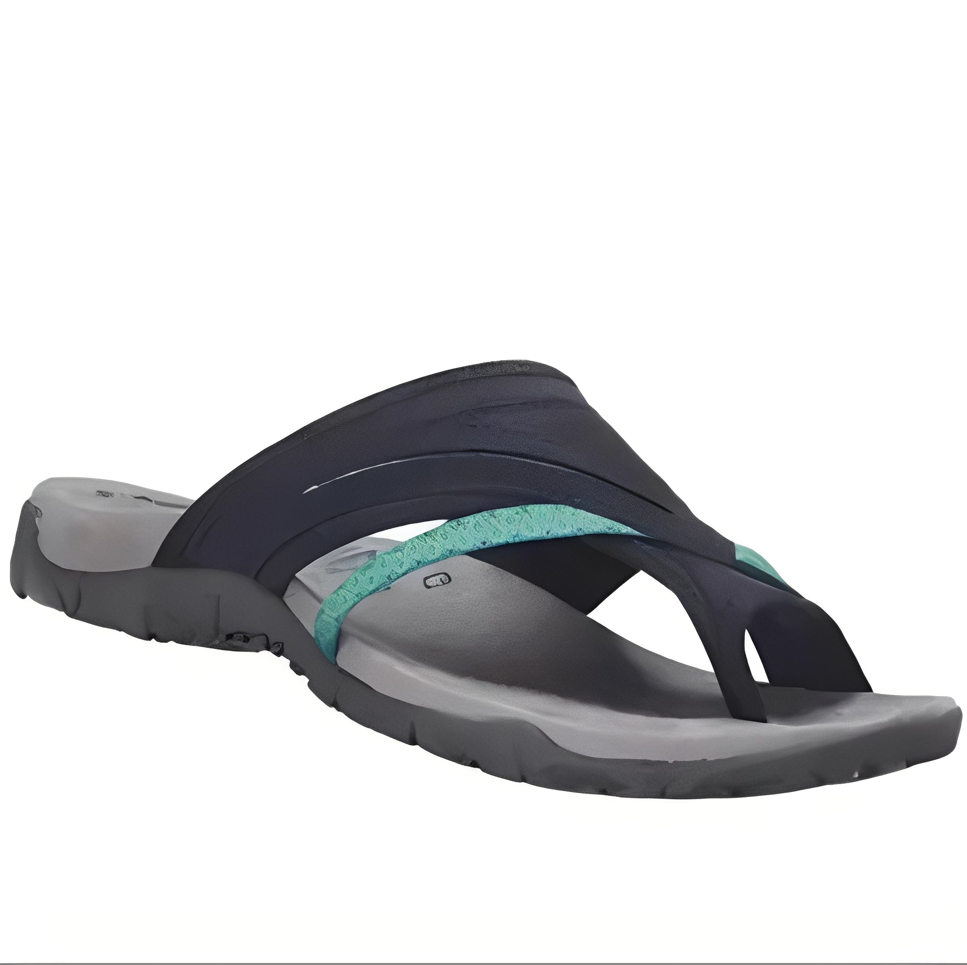 These sandals feature a built-in arch support system. The design is intended to help support distribute pressure across the foot. The footbed includes a memory foam material that may help for for cushioning.